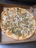 Sausage, pepperoni, bacon, meatball, onions, peppers, mushrooms & mozzarella.